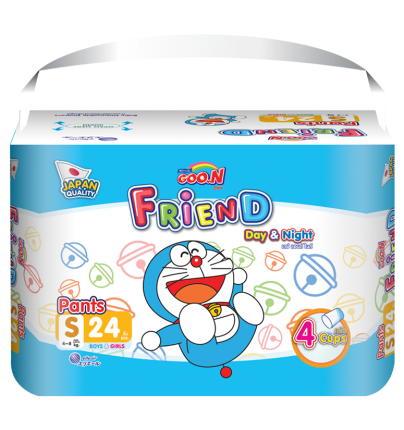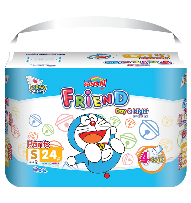 GOO.N Friend (Doraemon) diapers is the economy line of GOO.N that comes in pants variant only. It can absorb up to 4-cups of urine best for day & night use.