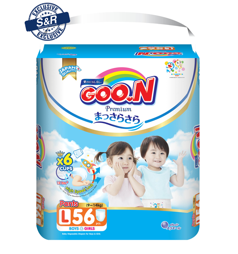 GOO.N Friend (Doraemon) diapers is the economy line of GOO.N that comes in pants variant only. It can absorb up to 4-cups of urine best for day & night use.
